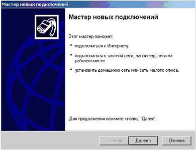 - Откроется "Мастер сетевых подключений".