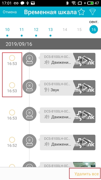 6. Отметьте видеофайлы, которые необходимо удалить или нажмите Удалить все в правом нижнем углу страницы для удаления всех видеофайлов.