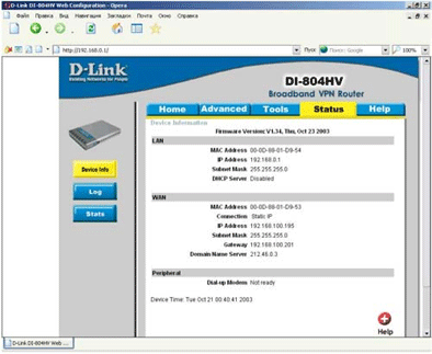 Внутренний IP-адрес DI-804HV по умолчанию - 192.168.0.1, поэтому компьютеру, с которого конфигурируется устройство, нужно назначить IP- адрес типа 192.168.0.х
