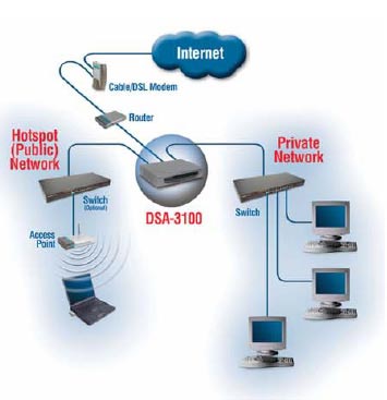 Вы можете подключить к точке доступа ваш интернет-маршрутизатор. В этом случае порт Ethernet точки доступа подключается к DSL-модему или маршрутизатору. Данная схема привлекательна тем, что беспроводные пользователи могут разделять общий доступ в интернет.