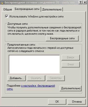 В случае использования Windows (на примере Windows XP SP2) для настройки сети Ad-Hoc нажмите ПУСК, найдите ПАНЕЛЬ УПРАВЛЕНИЯ, откройте СЕТЕВЫЕ ПОДКЛЮЧЕНИЯ. На значке «Беспроводное сетевое соединение» правой кнопкой мыши выберите СВОЙСТВА. В появившемся окне выберите закладку Беспроводные сети и нажмите кнопку Добавить.