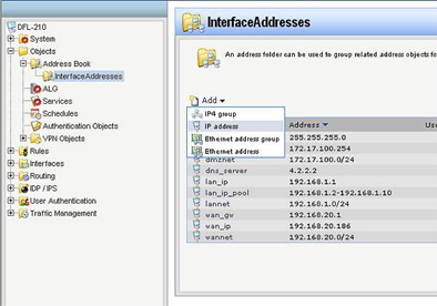 Шаг 2: Нажмите на знак «+» рядом с папкой Objects, выберите Address Book, а затем Interface Addresses.