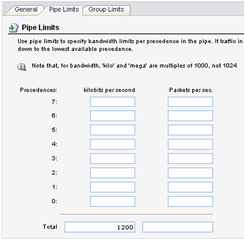 Перейдите в Traffic Management -> Traffic Shaping -> Pipes.