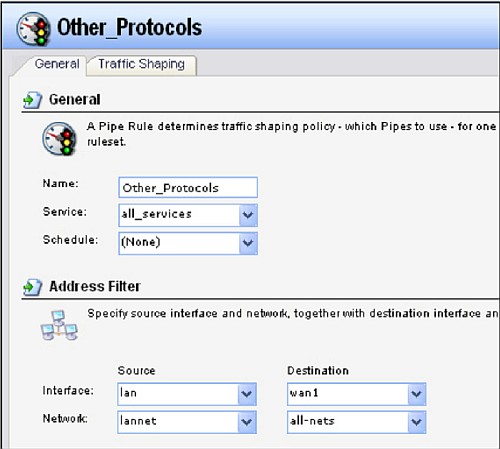Вкладка Traffic Shaping: