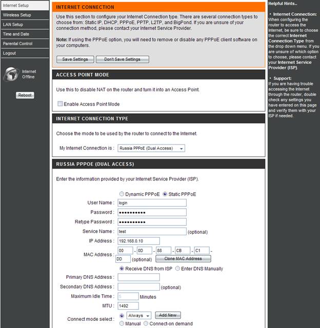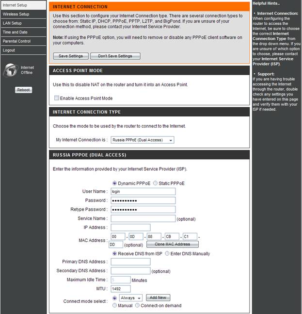 5. MAC Address – если в сети провайдера есть привязка по MAC Address’ у, то нажимаете кнопку Clone MAC Address.
