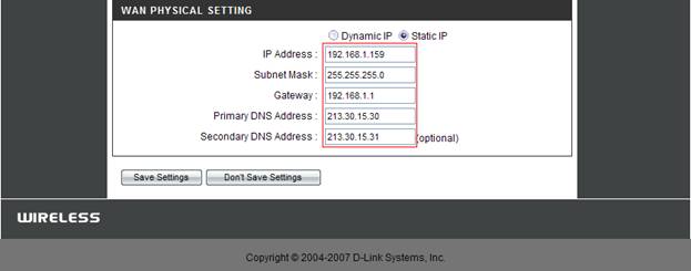 7. Если провайдер использует статический IP адрес: