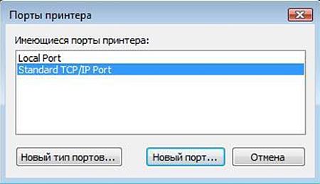 6. В появившемся окне выберите пункт Создать новый порт, выберите тип порта Standard TCP/IP Port. Нажмите Далее