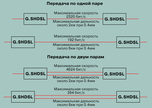 Рис. 1. Возможности систем передачи G.shdsl.