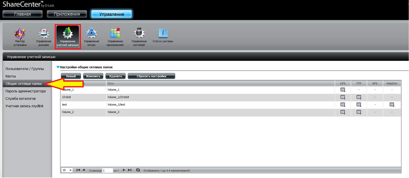 Шаг 17: После сохранения настроек информация о папке для общего доступа будет отображена в соответствующей таблице.