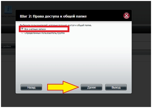 Шаг 12: Выберите правило сетевого доступа для этой папки и затем нажмите кнопку Далее.