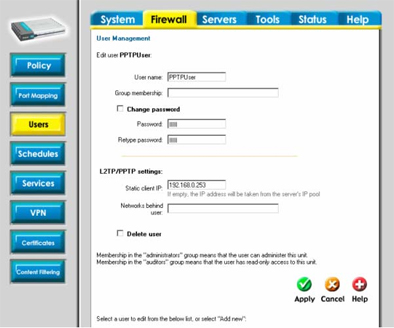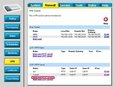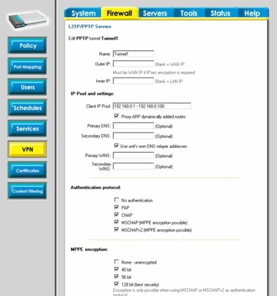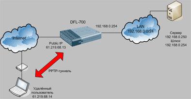 Настройка сервера PPTP на межсетевом экране DFL-200/700/1100