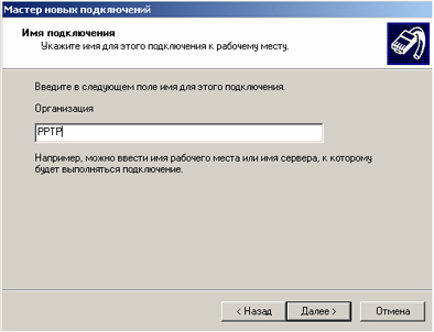 5) Укажите имя подключения (например, PPTP).
