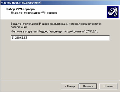 6) Укажите имя или IP адрес VPN-сервера: