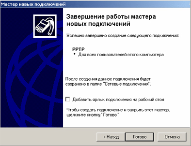 7) Ваше PPTP-соединение готово!