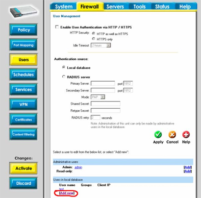 1) На вкладке Firewall -> Users выберите Add new.