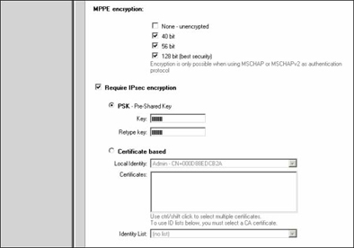 Если необходимо пробросить PPTP-туннель поверх IPSec туннеля, то необходимо задать также параметр PSK (Pre-Shared Key) или сертификат этого соединения.