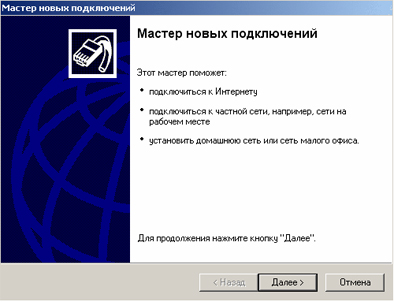 2) Откроется "Мастер сетевых подключений".