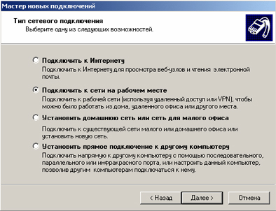 3) Выберите "Подключить к сети на рабочем месте".