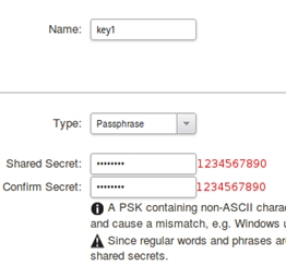 Пройдите в Web интерфейсе Objects → Key Ring, нажмите кнопку Add, из выпадающего меню выберите Pre-Shared Key.