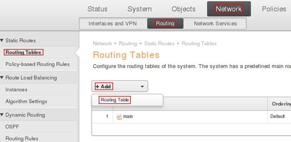 Пройдите Network → Routing → Routing tables и нажмите кнопку Add, из выпадающего меню выберите Routing Table.