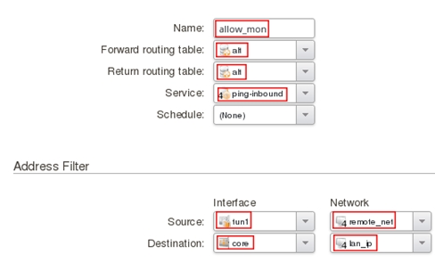 add RoutingRule Service=ping-inbound SourceInterface=tun1 SourceNetwork=remote_net DestinationInterface=core DestinationNetwork=InterfaceAddresses/lan_ip ForwardRoutingTable=alt ReturnRoutingTable=alt Name=allow_mon