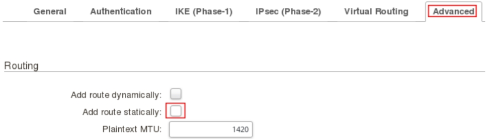 ВНИМАНИЕ, только при настройки первого тоннеля изменяются настройки автоматического создания маршрутов на вкладке Advanced.