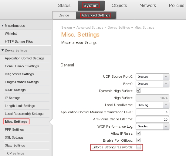 Пройдите в web интерфейсе System → Advanced Settings → Misc. Settings, отключите опцию Enforce Strong Passwords