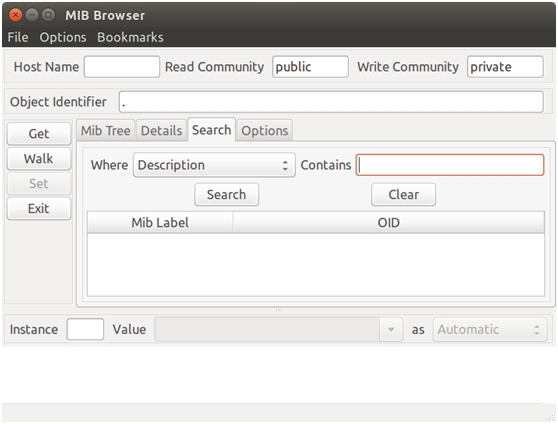 Каждый объект имеет свой уникальный числовой идентификатор OID, для получения необходимого OID можно раскрыть соответствующую ветвь MIB (рисунок 2) или воспользоваться поиском выбрав раздел Search → Contains и ввести данные для поиска (рисунок 3).