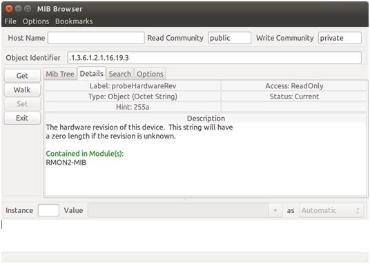 В списке найденных MIB имён следует выбрать искомый параметр, если появляются затруднения в выборе нужного MIB, следует обратиться к описанию. Для просмотра описания объекта следует перейти в раздел Details (рисунок 5).
