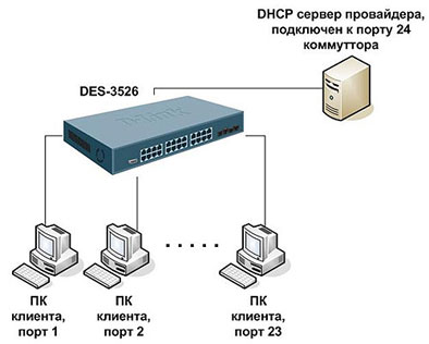 Рассмотрим схему сети на примере коммутатора DES-3526. Для остальных коммутаторов D-Link с поддержкой ACL настройка выполняется по аналогии.