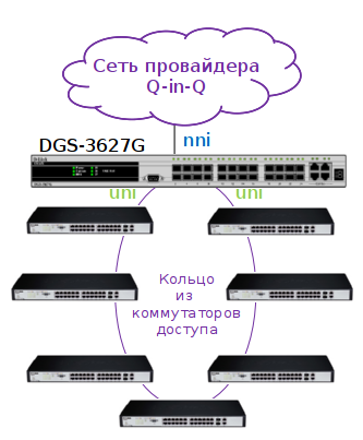 «role nni» означает, что этот порт взаимодействует с сетью провайдера или другим граничным коммутатором.