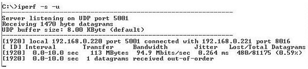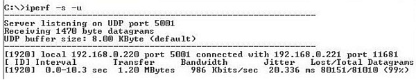 Iperf    –s -u