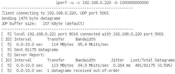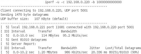 Iperf  – c -u  –b