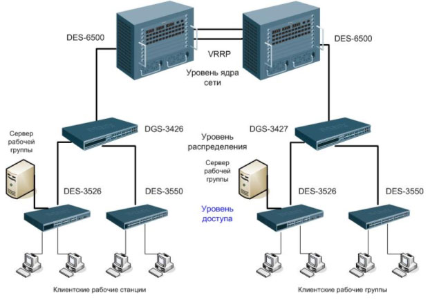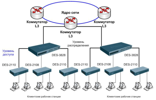 Схема применения в корпоративных сетях в качестве устройства уровня доступа: