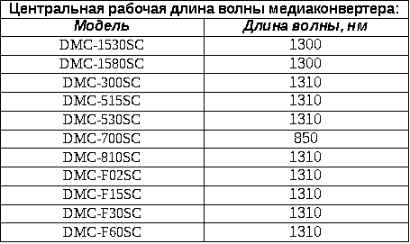 Рабочие длины волн медиаконвертеров