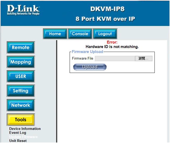 Вопрос: Что делать если при обновлении FW DKVM-IP8/T1 возникает ошибка «Hardware ID is not matching»?