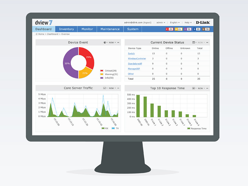 Программное обеспечение D-View 7 представляет собой комплексную систему сетевого управления, позволяющую контролировать наиболее важные параметры устройств, а также предоставляет универсальный набор программных инструментов, доступных для использования без необходимости установки ПО на клиентском оборудовании.