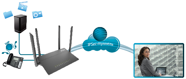 Кроме того, маршрутизатор поддерживает протокол IPsec и позволяет организовывать безопасные VPN-туннели. Поддержка протокола IKEv21 позволяет обеспечить упрощенную схему обмена сообщениями и использовать механизм асимметричной аутентификации при настройке IPsec-туннеля.