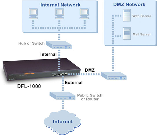 D-Link предлагает межсетевые экраны уровня малого офиса (Интернет-серверы и Интернет-маршрутизаторы) и уровня рабочих групп (Firewall). К первым относятся модели DI-604, DI-704P, DI-804v; ко врорым - DFL-500 и DFL-1000.