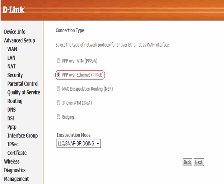3. На следующей странице выберите вариант «PPP over Ethernet (PPPoE)» и нажмите кнопку «NEXT».