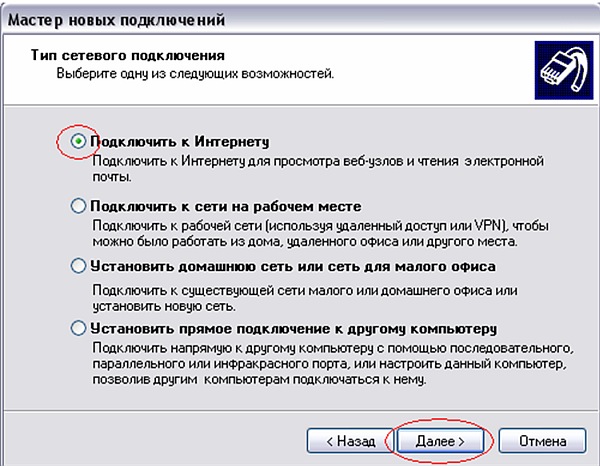 3. Выберите пункт «Подключить к Интернету» и нажмите «Далее»
