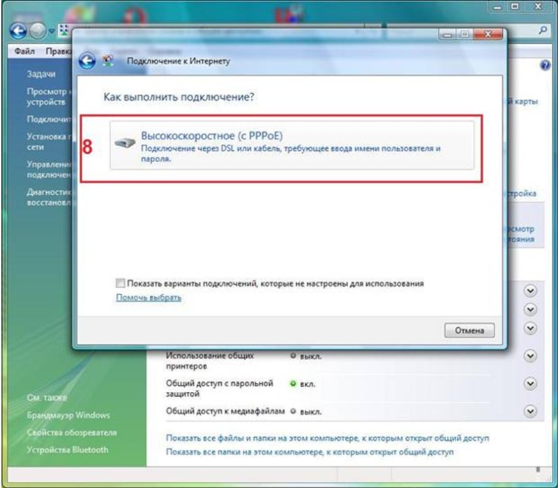 Настройка PPPoE клиента на рабочей станции под управлением ОС Windows Vista