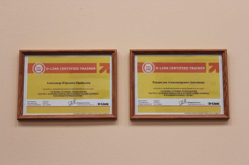 Слушатели авторизованного учебного центра после завершения обучения могут сдать экзамен и получить сертификат D-Link по соответствующему направлению.