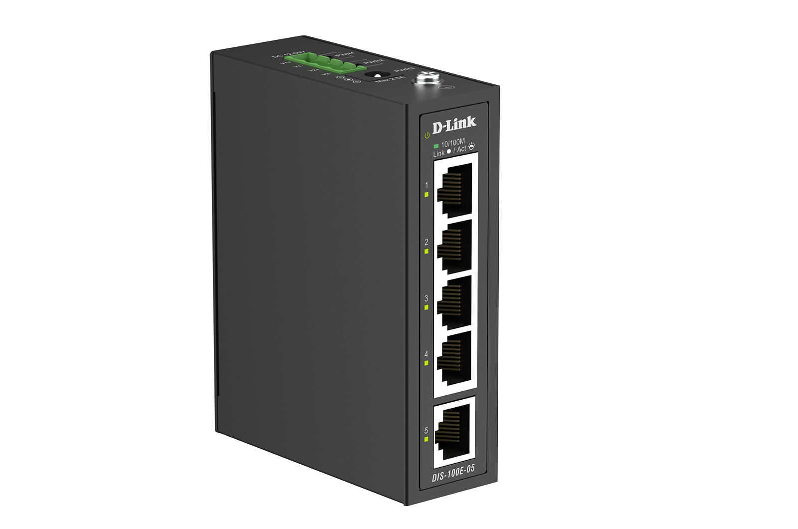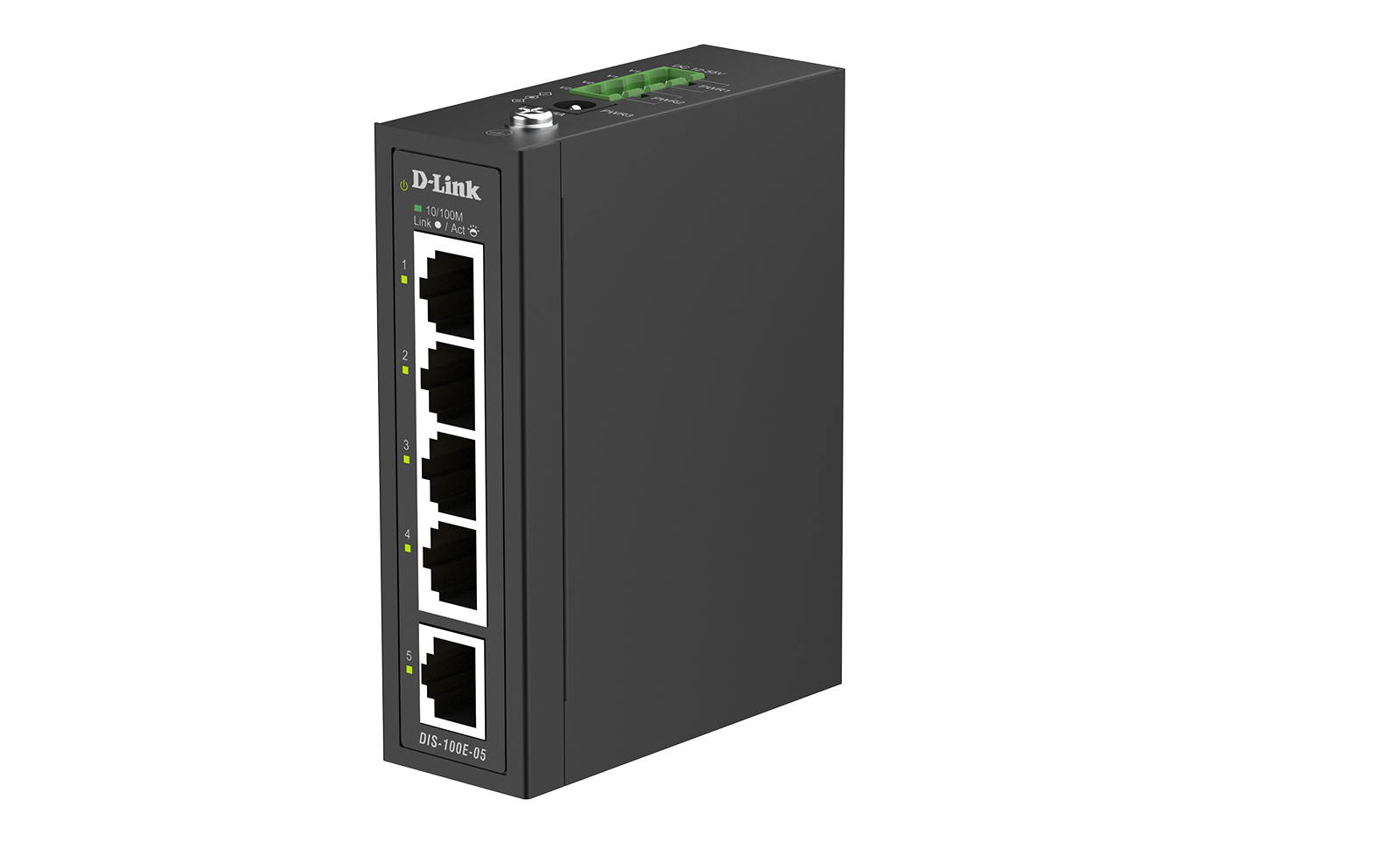 The DIS-100E-05 Fast Ethernet Industrial Unmanaged Switch features a robust design, making it ideal for deployment in industrial and outdoor cabinet surveillance settings and capable of withstanding the harshest environments. In addition, the DIS-100E-05 is plug-and-play, allowing for effortless and swift deployment.