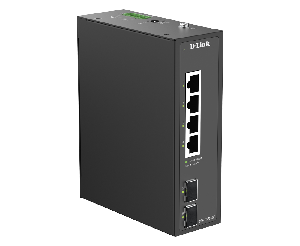 DIS-100G-06 Industrial Switch with 4x10/100/1000Base-T Ports and 2x1000Base-X SFP Ports