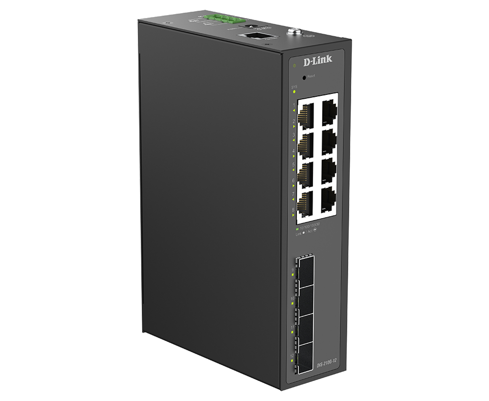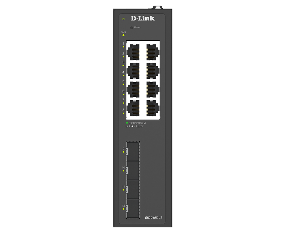 DIS-210G-12 Layer 2 Industrial Managed Switch with 8x10/100/1000Base-T Ports and 4x1000Base-X SFP Ports