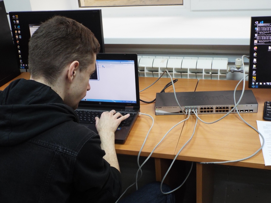 В финальном туре участникам было предложено практическое задание по планированию компьютерной сети организации, включающее настройку реального оборудования – коммутаторов, маршрутизаторов, клиентских компьютеров. Студенты должны были спроектировать структуру сети, назначить IP-адреса всем узлам сети, спланировать и настроить на коммутаторе виртуальные локальные сети, обеспечить выход во внешнюю сеть для всех компьютеров организации, настроить сетевой экран маршрутизатора для доступа к серверу организации из внешней сети.
