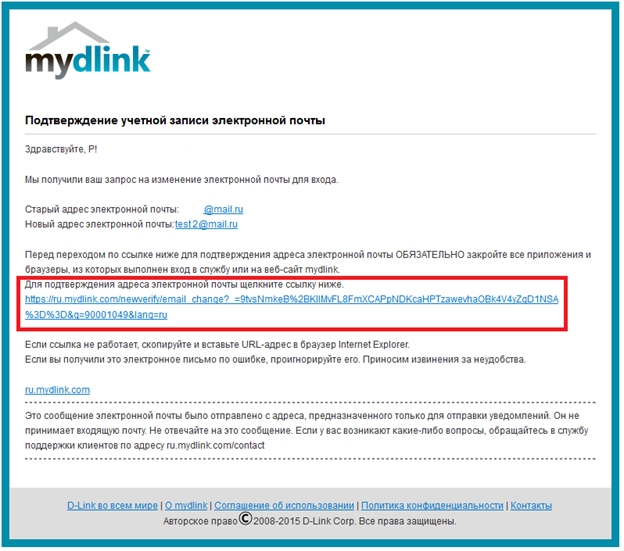 Нажмите кнопку OK и проверьте электронную почту на наличие письма с портала mydlink.