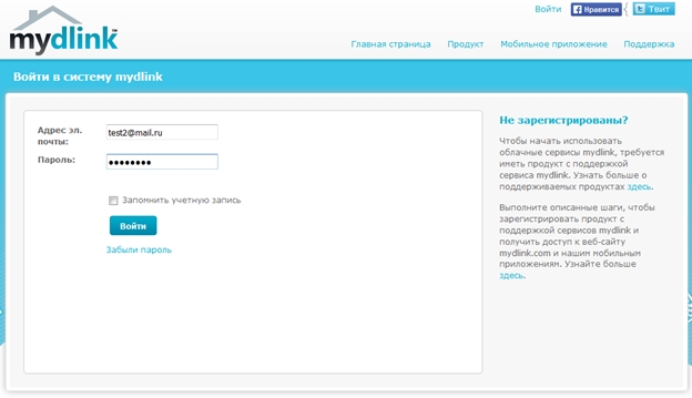 Важно: необходимо использовать адрес электронной почты, который не использовался ранее с порталом mydlink.