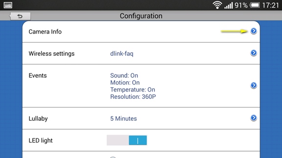 Шаг 4: Коснитесь стрелочки в поле Camera info (Информация о камере), чтобы открыть раздел настроек информации о камере.